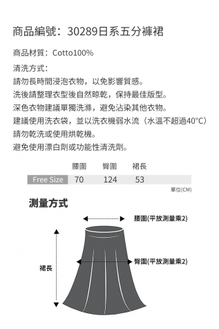 商品名稱:【買一送一】日系五分褲裙(30289)-